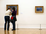 Der erste Andrang auf die Ausstellung ist verflogen und man kann sich den meist lichterfüllten Bildern hingeben. Im Foyer wird der Besucher noch einmal auf K.O.Götz verwiesen, welches durch diese Wandplastik und farbige Glasfenster des Künstlers geschmückt wird. |